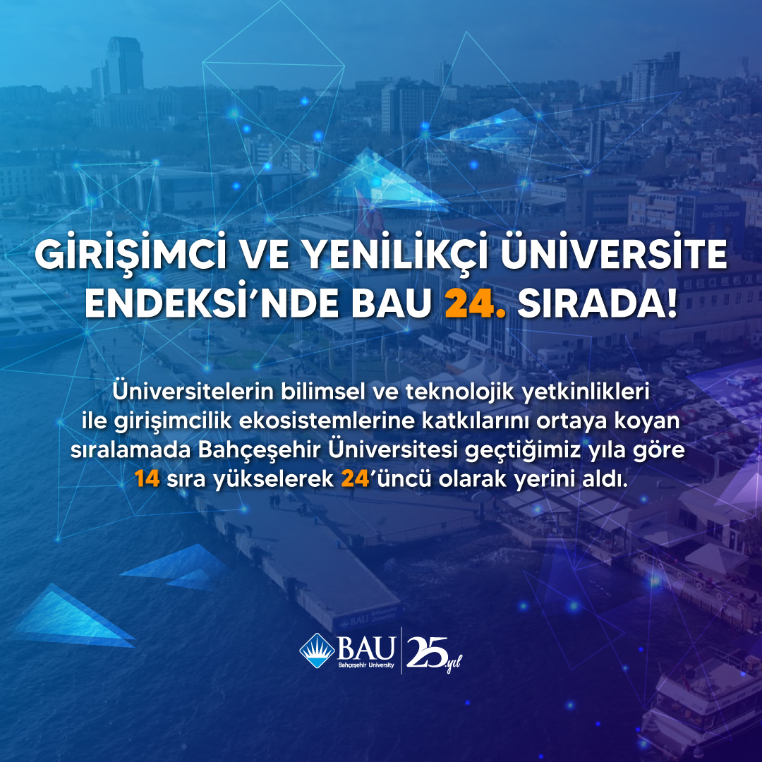 TÜBİTAK tarafından açıklanan 2022 yılı “TÜBİTAK Girişimci ve Yenilikçi Üniversite Endeksi” sıralamasında BAU bir önceki yıla göre 14 basamak yükselerek 24. Sırada yer aldı. Öğretim üyesi sayısı 50’nin üzerinde olan 192 üniversitenin dikkate alındığı sıralamada üniversiteler, Bilimsel ve Teknolojik Araştırma Yetkinliği, Fikri Mülkiyet Havuzu, İşbirliği ve Etkileşim ve Ekonomik Katkı ve Ticarileşme olmak üzere dört kategoride ve 23 göstergeye göre değerlendirilmiş ve toplam puana göre sıralandı.