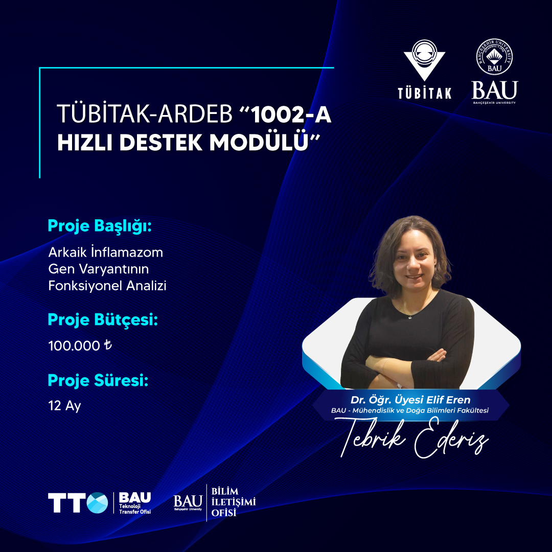 BAU Mühendislik ve Doğa Bilimleri Fakültesi akademisyenimiz Dr. Öğr. Üyesi Elif Eren’in “Arkaik İnflamazom Gen Varyantının Fonksiyonel Analizi” başlıklı 100.000 TL bütçeli projesi 12 ay süreyle desteklenmeye hak kazandı.