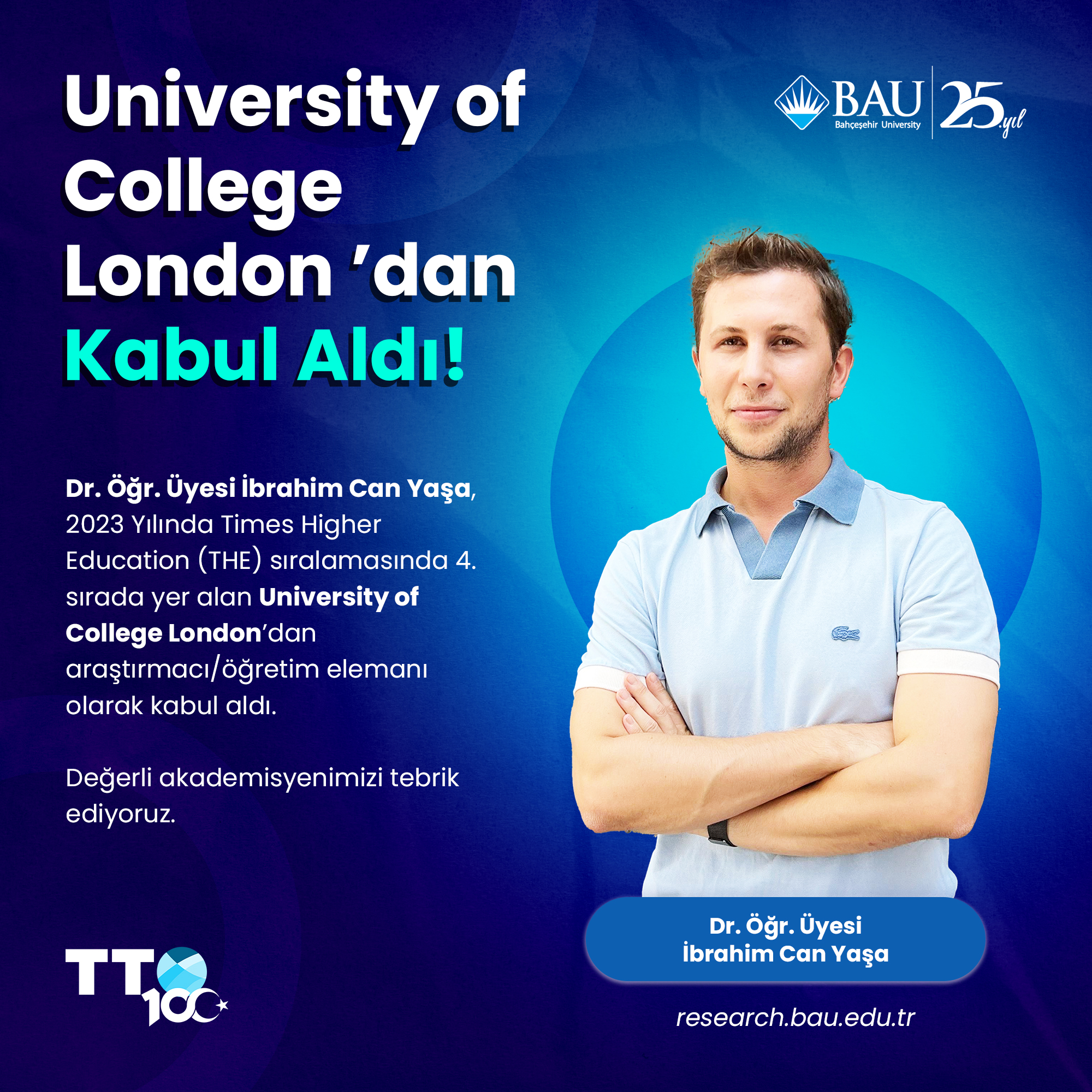 Dr. Öğr. Üyesi Dr. İbrahim Can Yaşa University of College London ’dan Kabul Aldı!