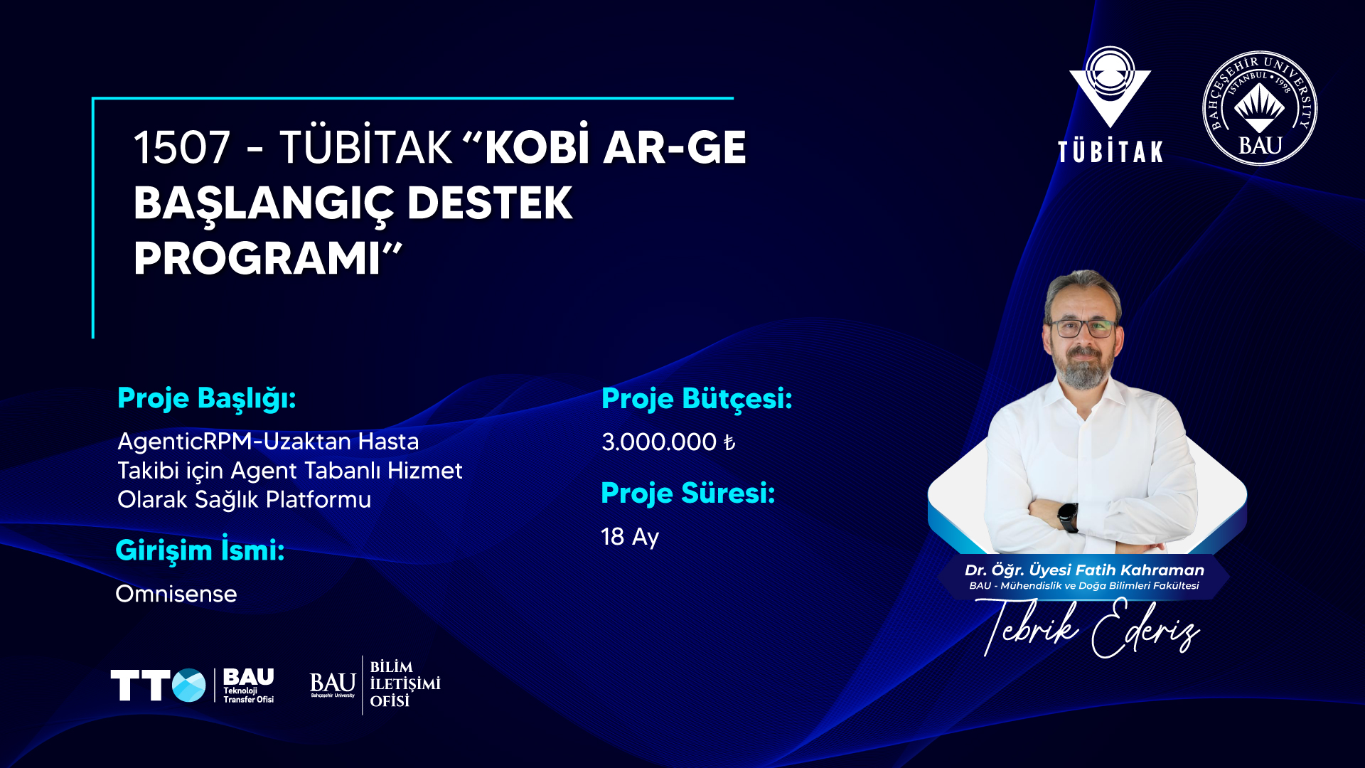 Dr. Öğr. Üyesi Fatih Kahraman’ın Projesi Desteklenmeye Hak Kazandı!