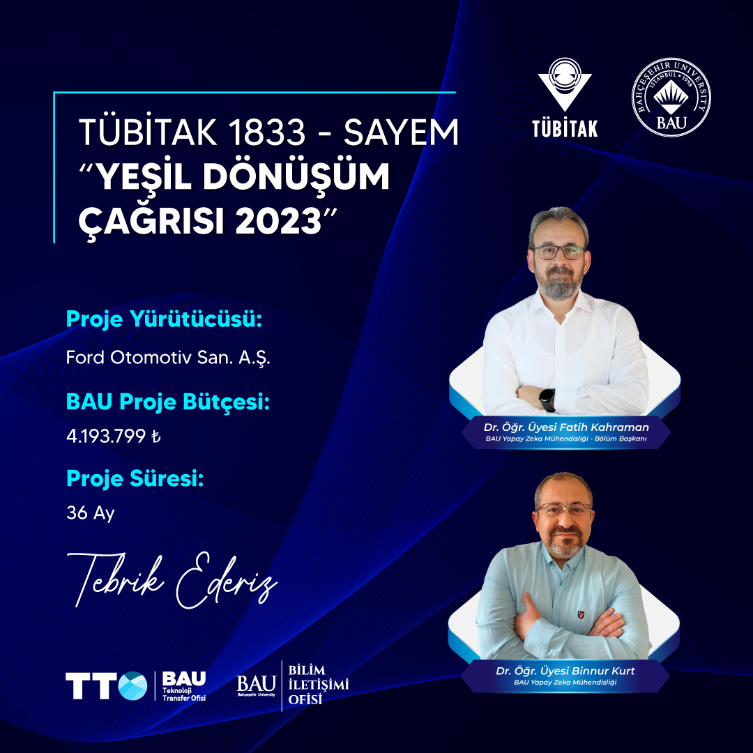 Üniversitemize 36 ay süre ile 4.193.799 TL destek bütçesi tahsis edilecek projenin ve konsorsiyumun geliştirilmesindeki liderlik; Mühendislik ve Doğa Bilimleri Fakültesi Yapay Zeka Mühendisliği öğretim üyeleri Dr. Öğr. Üyesi Fatih Kahraman ve Dr. Öğr. Üyesi Binnur Kurt tarafından üstlenilmiştir.